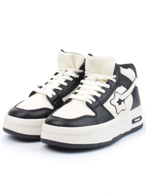 • 05-P84-1Z WHITE/BLACK Кроссовки женские зимние (натуральная и искусственная кожа, шерсть)
