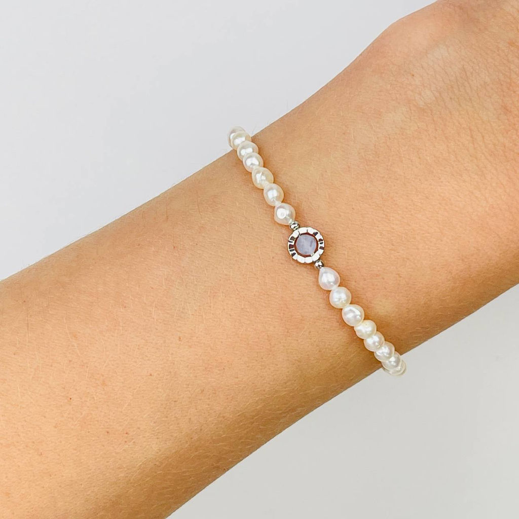 • Браслет из Жемчуга и Голубого агата 18 см +