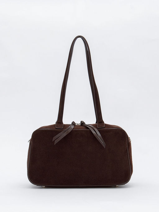 Вместительная модель, выполнена из замши. Дополнена серебристой фурнитурой. Данная модель закрывается на молнию. Каркас полужесткий. Носится в руке или на плече. В комплекте имеется съемный ремень с регулировкой длины. На дне предусмотрены ножки.