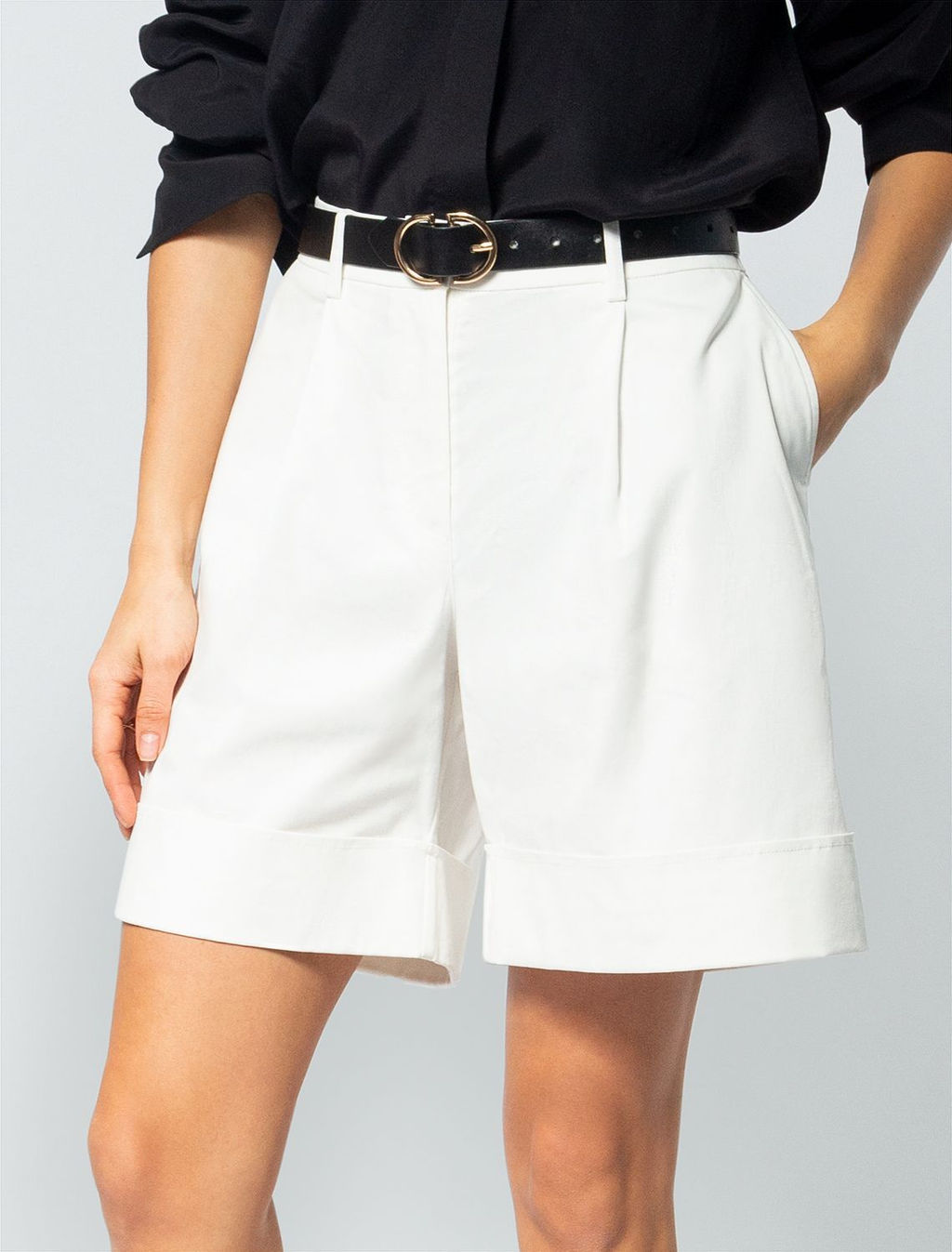 Шорты в стиле сафари выполнены из тонкого хлопкового твила. Модель с посадкой на талии дополнена боковыми карманами. Благодаря наличию эластана в составе, изделие хорошей формоустойчивостью и сохранит свой безупречный внешний вид в течении долгого времени. Подходит для любой фигуры.­