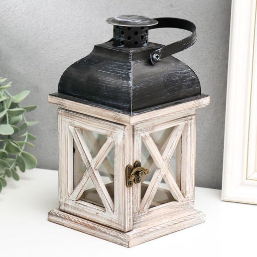 • Деревянный подсвечник - фонарь на 1 свечу «Ставни», состаренный, 22×11.5×11.5 см