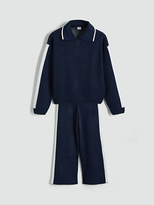 Polo Yaka K?z ?ocuk Triko Kazak ve Pantolon