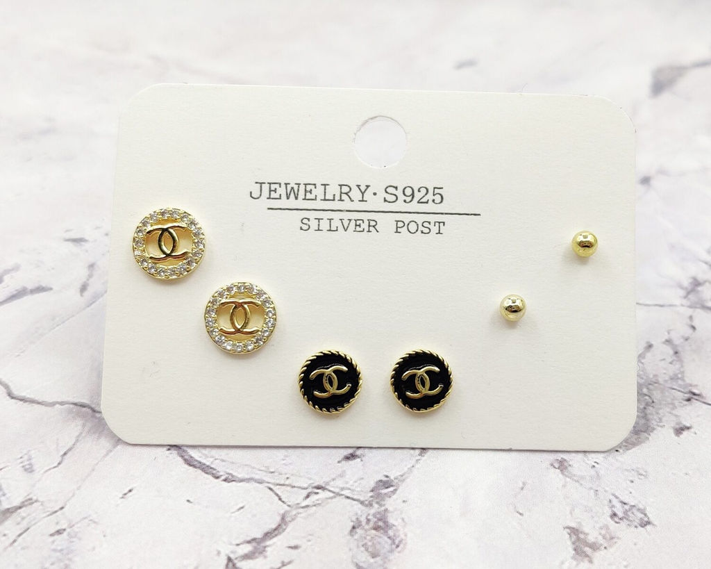 В комплект входят 6 гвоздиков которые можно одевать ассиметрично,на одно ухо, или сочетать между собой в зависимости от Вашего образа.