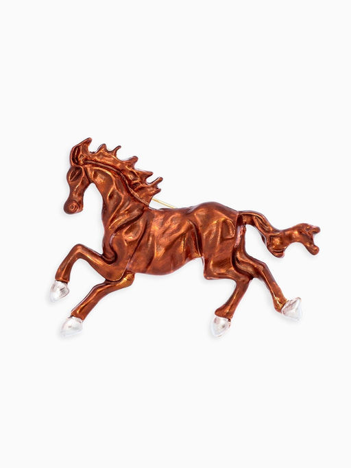 • Брошь "Лошадь", конь степной, цвет коричневый в золоте