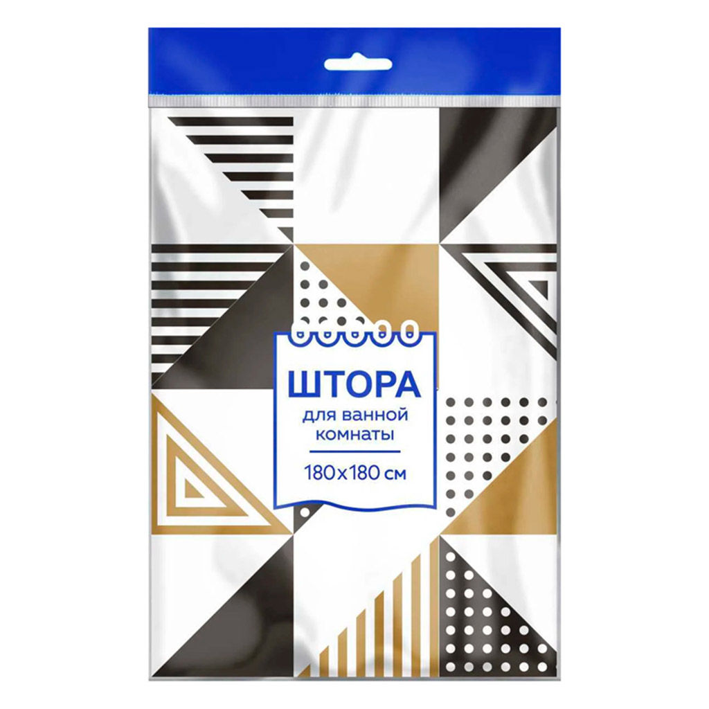 Штора для ванной комнаты из ПВД 180х180см "Геометрия", 35мкм, 12 колец, в пакете (Россия)