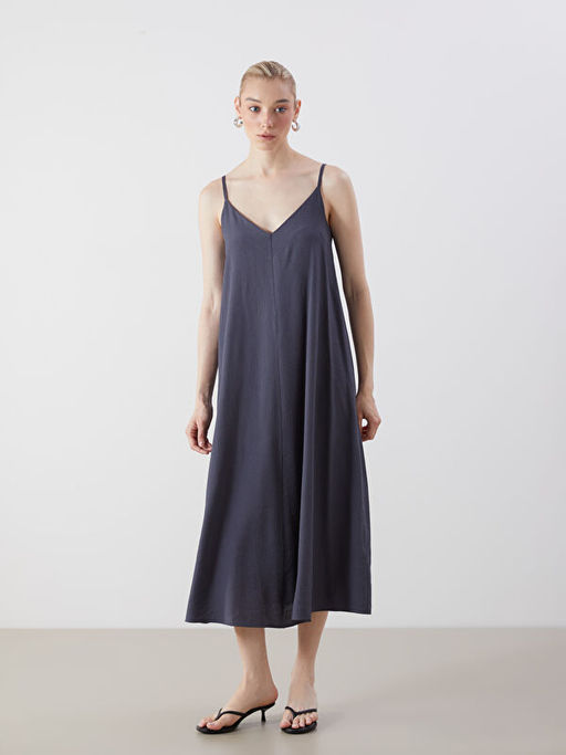• V Yaka Dokulu A Kesim Elbise