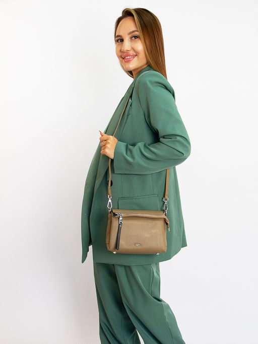 Сумка женская выполнена из натуральной кожи. Детали: 1 съёмная регулируемая ручка из кожи 130см. Внутри изделия: 3 отделения на молнии, 1 карман на молнии, 1 карман открытый. Брендированная подкладка из полиэстера. Металлическая брендированная фурнитура серебристого цвета. В комплекте фирменный пыльник.­