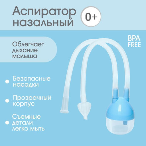 Детский назальный аспиратор, с отводной трубкой, голубой