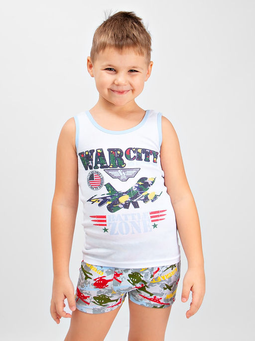 Комплект нижнего белья, состоящий из майки и трусов-боксеров. Натуральный хлопковый материал обладает повышенными гигиеническими свойствами, прекрасно пропускает воздух. Идеальный выбор на каждый день, для школы или детского сада.