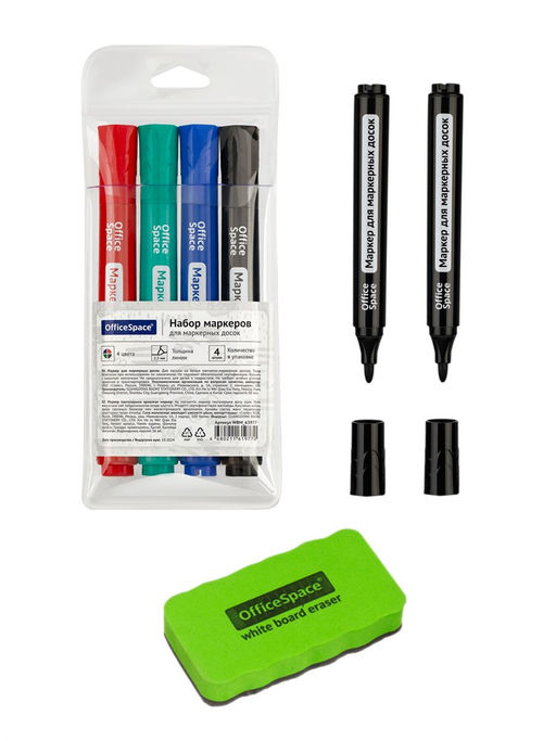 • Набор для досок: маркеры 4 цв. + черные маркеры 2 шт. + губка на магните (SWBM/3_67100)