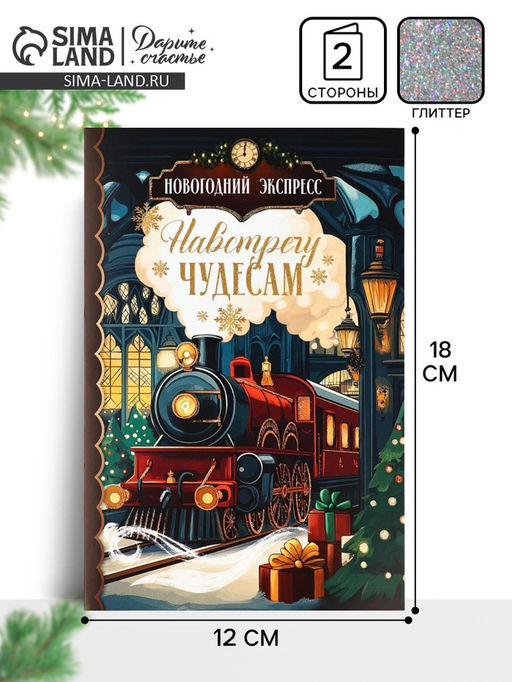 • Цена за 10 шт. Открытка «Навстречу новогодним чудесам», глиттер, 12×18 см