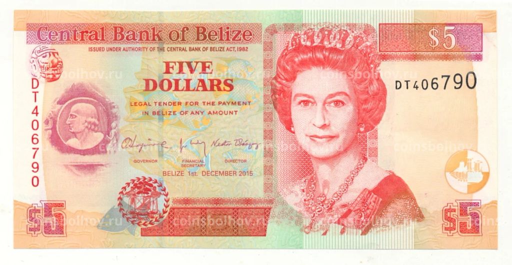 • Банкнота 5 долларов 2015 года Белиз