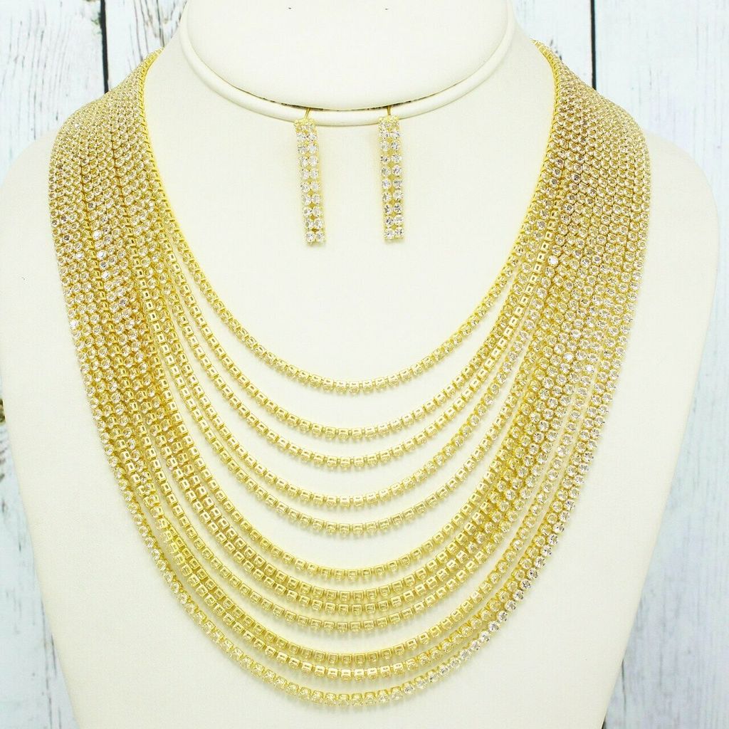 Комплект (подвеска и серьги) Размер колье 50 см. Длина колье 27 см. Изготовлен из ювелирного сплава покрытого золотом. Металл не тускнеет и не стирается со временем. Изделие гипоаллергенно, не окисляется и не раздражает кожу.