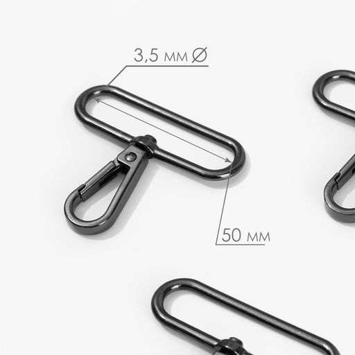 • Цена за 2 шт. Карабин металлический, 57×49 мм / 50×3.5 мм, 3 шт., чёрный