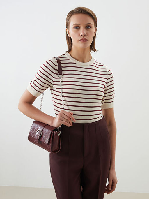 Bisiklet Yaka ?izgili Kad?n Triko Kazak