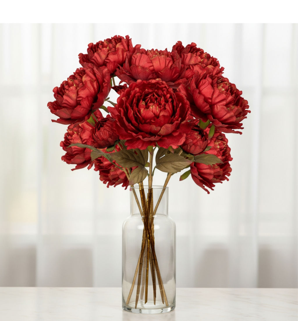 • Букет Пионов 9шт "FLOWERS GLAMOUR" 60см красные