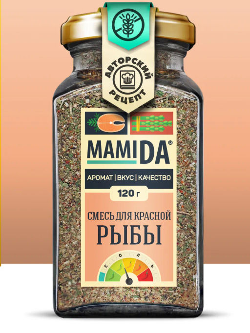 Приправа для красной рыбы - это неповторимый букет ароматных пряностей и душистых трав, идеально подходящий для приготовления любых рыбных блюд, будь то сочный жареный стейк, рыба в кляре, рыба запеченная в духовке или на костре, рыбный пирог или вкуснейшие расстегаи, салат с тунцом, рыбные котлеты или суп - наша приправа неизменно подарит блюду свой удивительный вкус и аромат! В составе только натуральные ингредиенты - чеснок, лук, петрушка, розмарин, паприка, чабрец, перец красный, перец черный, лимон, соль и немножко сахара для красивой корочки. ПРИМЕНЕНИЕ: преред термической обработкой советуем натереть рыбу за 15-20 минут, в остальных случаях добавлять в блюдо незадолго до готовности либо даже посыпать уже готовое блюдо. Приправа содержит соль, но вы всегда можете досолить по своему вкусу, приятного аппетита! Специи и приправы МамиДА - лучший подарок на любой праздник для ваших любимых!