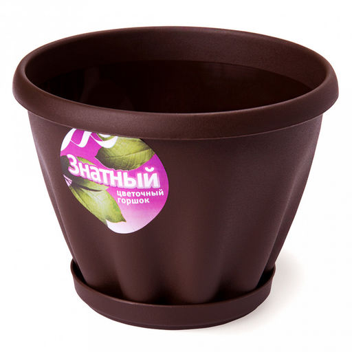 Горшок для цветов пластмассовый "Знатный" 0,45л, д11см, h8см, с поддоном, шоколадный (Россия)