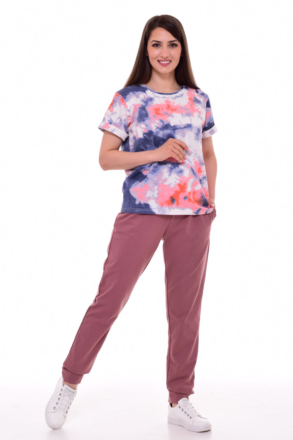 Брюки - джоггеры с высокой посадкой на поясе с резинкой и со шнуром, два боковых кармана, к низу брюки заужены и заканчиваются манжетом. Длина брюк по боковому шву: 42-101 см, 44-102 см, 46-103 см, 48-104 см, 50-105 см, 52-105 см, 54-105 см, 56-108 см, 58-107 см, 60-108 см. Длина по шаговому шву: 42-77 см, 44-77 см, 46-77 см, 48-77 см, 48-77 см, 50-77 см, 52-78 см, 54-78 см, 56-78 см, 58-79 см, 60-79 см.
