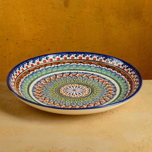 Посуда с национальной росписью станет отменным подарком для ценителей высокородной посуды.Риштан — город на востоке Узбекистана, один из древнейших в Ферганской долине. С давних времён Риштан славится своим гончарным искусством изготовления цветной керамики. Красноватую глину для изделия добывают в самом городе. Мастера утверждают, что их глина настолько высокого качества, что даже не нуждается в предварительной обработке. Дополните коллекцию кухонных аксессуаров пряными восточными нотами.Все товары производства Узбекистан. Набор: Нет. Форма: Круглая. Диаметр, см: 31. Тематика: Растительный орнамент. Тематика: Цветочно-растительная. Рисунок: Да. Крышка: Нет. Можно мыть в посудомоечной машине: Нет. Можно использовать в СВЧ-печи: Да. Особенности: Глазурованные. Бесплатная доставка: Да. Примечание: Ручная работа, рисунок может отличаться от фото. Примечание: Изделие нельзя мыть в посудомоечной машине.