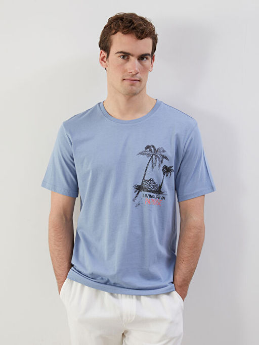 • Bisiklet Yaka K?sa Kollu Bask?l? Penye Erkek Ti??rt
