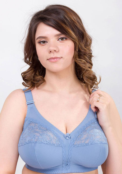 Бюстгальтер из неэластичного и эластичного трикотажных полотен и неэластичного кружевного полотна . Без каркасов. Детали чашек на подкладке из тканного хлопкового полотна. Состав: