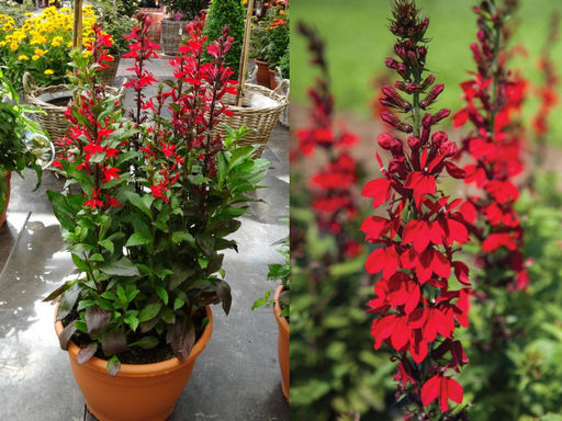 Садовый огонь - лобелия Фан Скарлет (Fan Scarlet) воплощение драматической красоты в саду. Расставьте выразительные акценты в саду, используя её яркие алые цветки! Собранные в изящные вертикальные колосовидные соцветия, словно языки пламени, они поднимаются над бронзово-зелеными листьями.