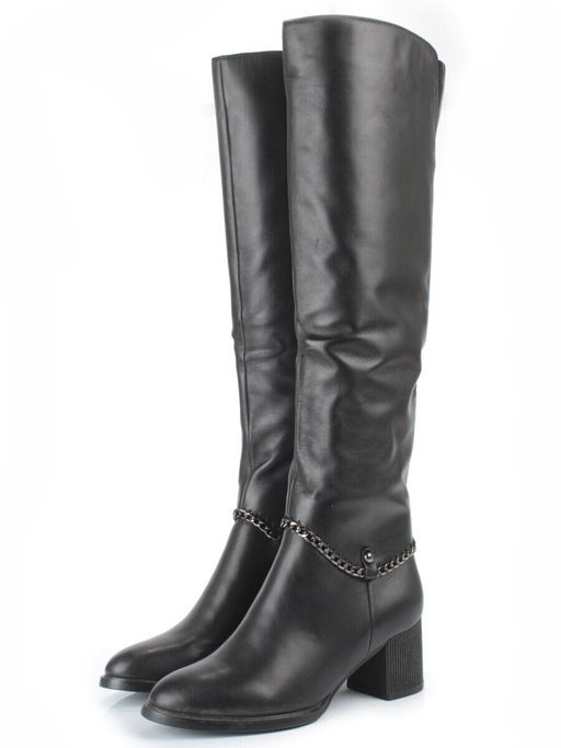 • D8H098-07B-1BM BLACK Сапоги демисезонные женские (натуральная кожа, натуральная байка)