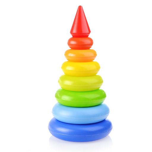 • Пирамида состоит из 6 колец, нанизанных на пластиковый штырь и вершины в форме конуса.