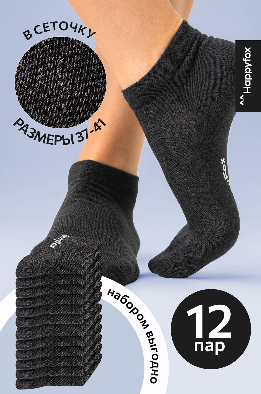 • Набор носков 12 пар в сетку Happyfox
