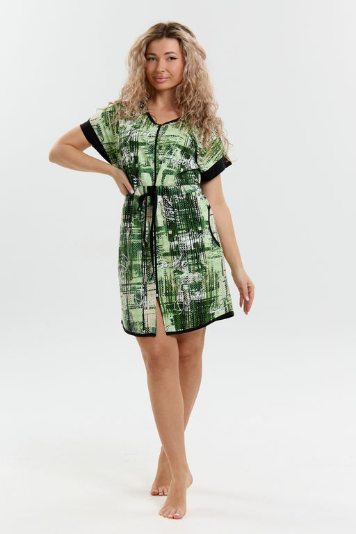 Женский трикотажный халат на молнии без сомнения станет самой желанной и любимой вещью в гардеробе любой дамы. Халатик укороченный, на кулисе со шнурком, с удобными карманами и молнией. Выглядит стильно и современно. Халатик такого плана подходит для фигур разного типа. Легкий и мягкий, качественный, дышащий, сшит из высококачественного трикотажа, подарит вам абсолютную непринужденность и легкость, простор в движении, идеально подойдет для беременных и кормящих и будет хорошим сопровождением в роддом и не вызовет раздражения, так как создан из натуральной ткани. Благодаря этому может стать прекрасным подарком для, мамы, подруги, бабушки, сестры или коллеги на любой праздник. Отлично сядет на женщин больших размеров. Данная модель будет кстати для отдыха на даче и даже поездки к морю. Домашняя одежда российского производства, имеет комфортную посадку, не линяет, не дает усадку после стирки и долго сохраняет первоначальный внешний вид. Халатик подчеркнет Ваш стиль и добавит молодежных нот в ваш образ, а затягивающийся пояс на талии придаст женственности и изящества вашему луку. Стирайте изделия из хлопка на бережном режиме с температурой не выше 30С, чтобы сохранить цвет, форму и фактуру материала. Приобретая наши изделия, радуйте себя и своих близких.