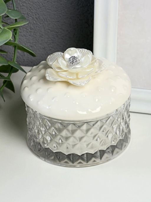 Шкатулка для украшений Жемчужный пион, стекло, стекло, керамика, 7?8.5?8.5 см