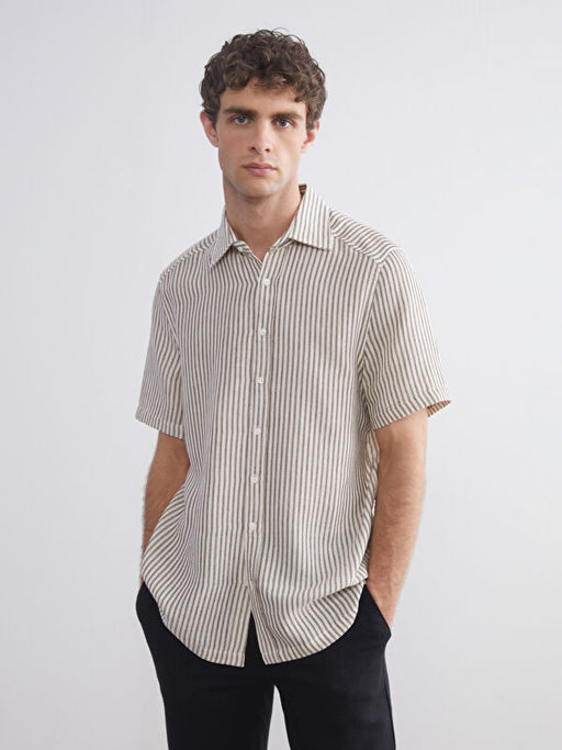 Regular Fit K?sa Kollu ?izgili M?slin Erkek G?mlek