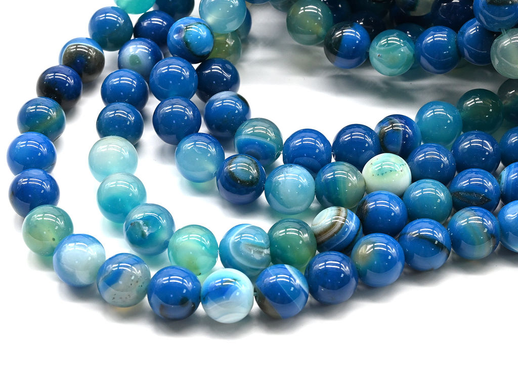 • Бусины из агата тонированного шарик 12мм цв.лазурный, 39см, 32 бусины Радуга камня