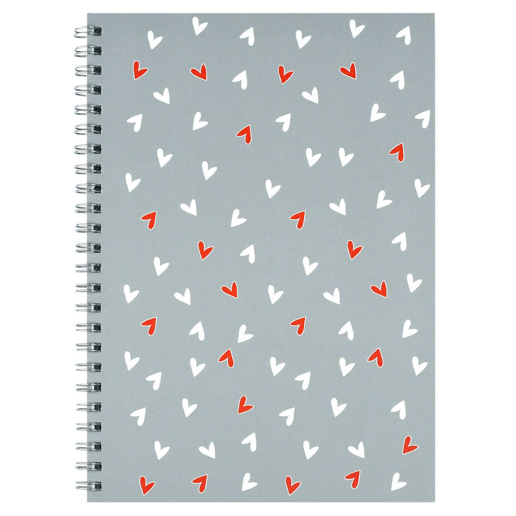 • Блокнот, А5, 48 л, арт. 72704 СЕРДЕЧКИ НА СЕРОМ / Блок - белый офсет 80 г/м?, клетка, гребень по дли