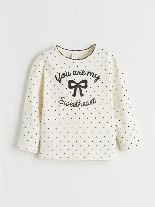 Bisiklet Yaka Kurdele Bask?l? K?z ?ocuk Ti??rt