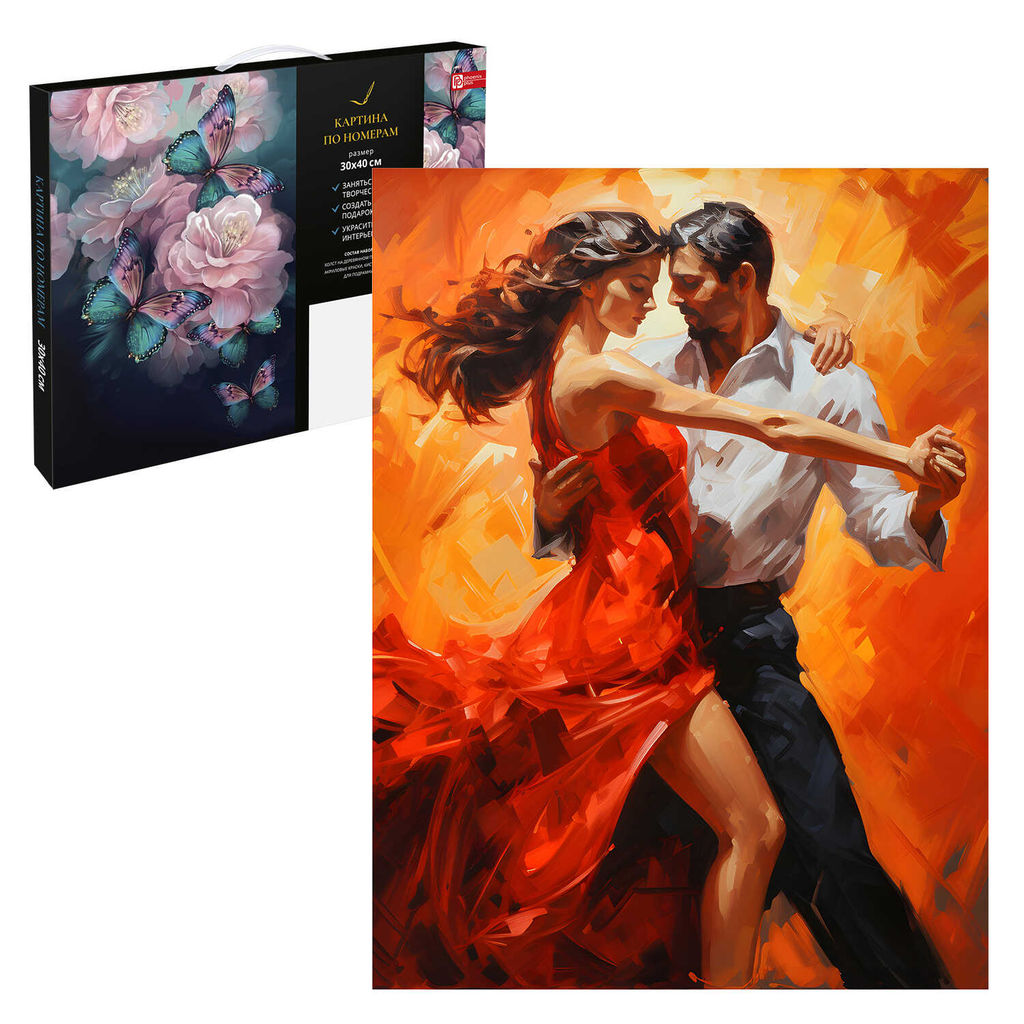 Набор для творчества Картина по номерам арт. 67937 / 24 ТАНГО ВДВОЁМ, размер: 30х40 см, (21 цвета (-ов), холст на деревянном подрамнике с напечатанной схемой рисунка, контрольный лист с нанесенной схемой, краски акриловые на водной основе (упакованы в вакуумную упаковку), кисти художественные с ворсом из нейлона 4 шт., подвесы для подрамника, пакет на zip-молнии, лак в комплекте, картонная коробка с ручкой)