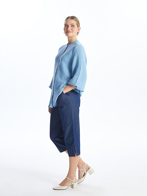• Kad?n Beli Lastikli D?z Jean Kapri