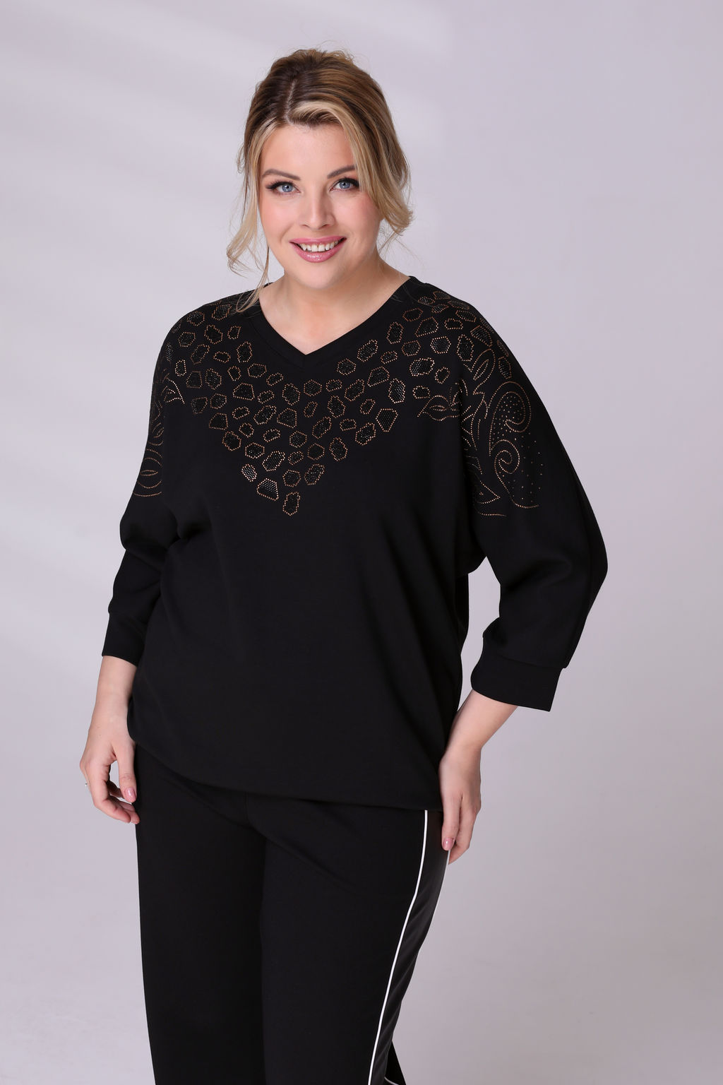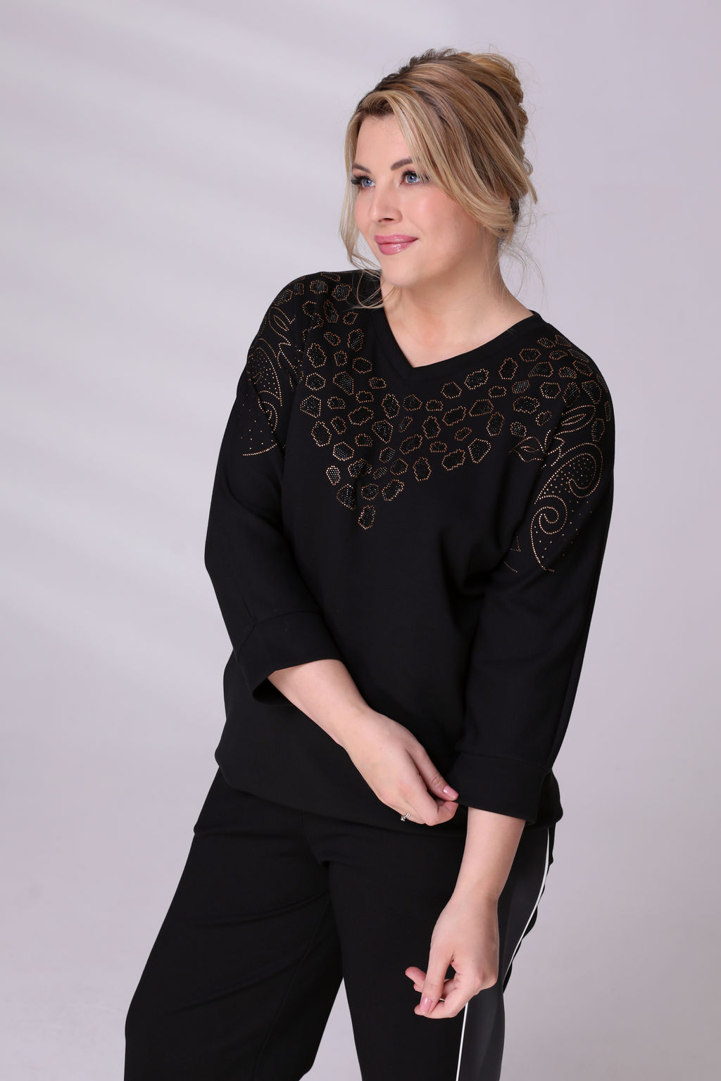 Джемпер со стразами из фигур черный­