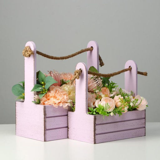• Подарочный ящик «Прованс», деревянный, ручка-канат, сиреневый, набор 2 шт.
