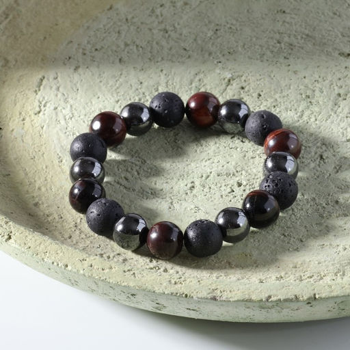 • Браслет «Лава, гематит, тигровый глаз», шар №10