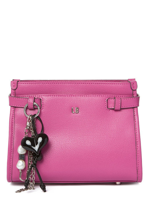 Женская сумка торговой марки Labbra из натуральной кожи. Изделие дополнено съемной подвеской на фирменном кольце-карабине - сердцем из прочного черного пластика в сочетании со шнурком, цепочкой и декоративной булавкой. Можно использовать как брелок для ключей или стильный аксессуар. Модель застегивается на молнию. Внутри одно отделение с карманом на молнии и открытым карманом для телефона. На передней и задней стенках изделия расположен карман на магните. Длина наплечного ремня из натуральной кожи - 118 см., ширина - 1,5 см. Модель имеет ножки на дне. Не вмещает формат А4.