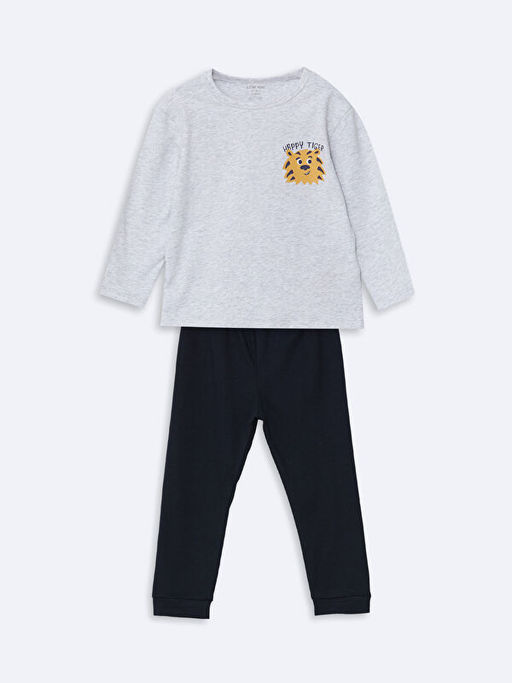 Bisiklet Yaka Bask?l? Erkek Bebek Sweatshirt ve E?ofman Alt 2li Tak?m