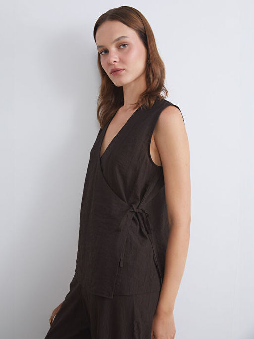 Kruvaze Yaka Dokulu Bluz