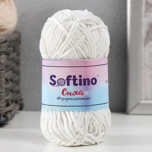 • Цена за 2 шт. Пряжа для вязания спицами, крючком светящаяся 100% лавсан Softino «Сияй», 50 г, 50 м, белая