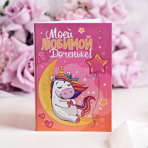 Открытка 4 шоколадки "Моей любимой доченьке (единорог)"