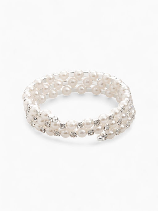 • Браслет-пружинка «Жемчуг. Стразы», d=6 см, шар № 6, белый в серебре