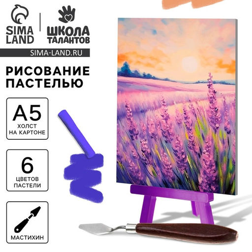 • Рисование пастелью с мольбертом Лавандовое поле, набор для творчества