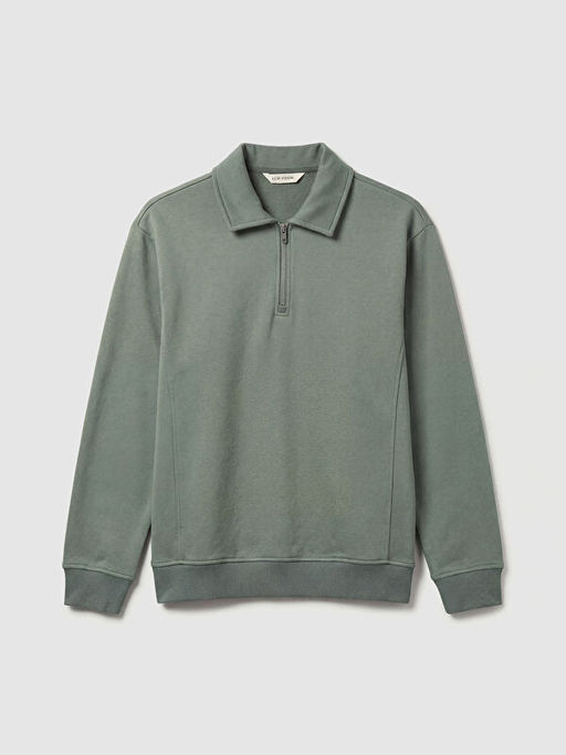 Polo Yaka Yar?m Fermuarl? Erkek Sweatshirt