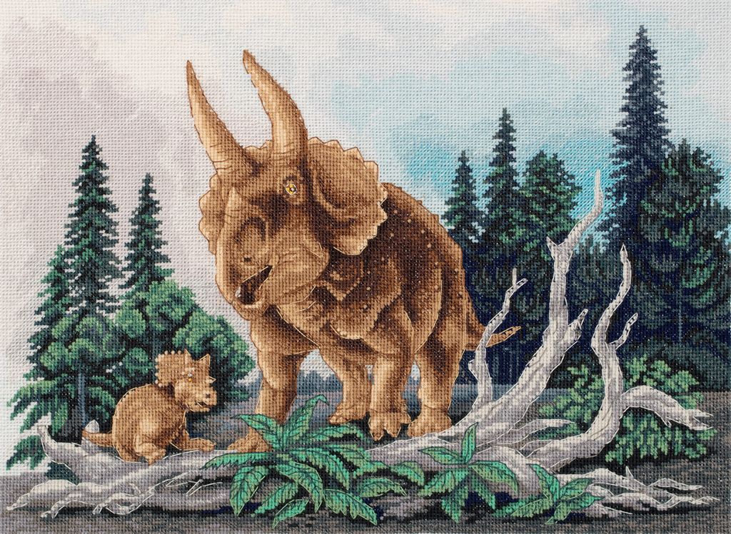 Описание В PANNA набор для вышивания входят: канва Gamma Aida 18, нитки , игла Gamma для вышивания, цветная схема, подробная инструкция по вышиванию и схема. Род растительноядных динозавров, живших примерно 68 миллионов лет назад. Внешность трицератопса легко узнаваема: большой костяной воротник, три рога на морде, крупные, толстые конечности и сходное с носорогом телосложение